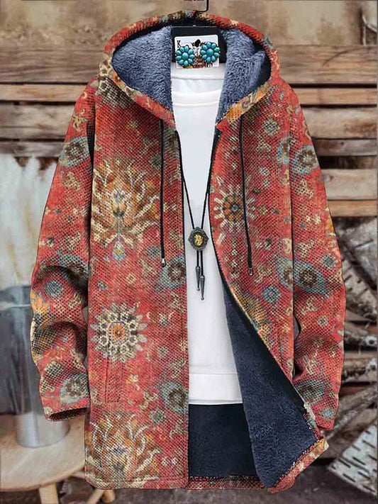 Retro Ethnic Pattern Print Unisex Plush Thick Long-Sleeved Sweater Cardigan Coat